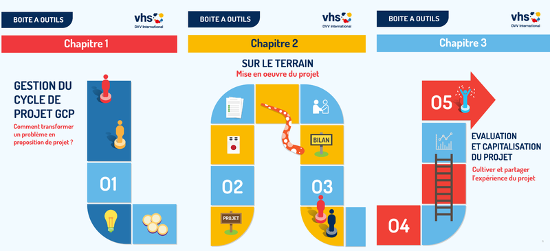 Afin de renforcer les acteurs notamment associatifs algériens et tunisiens, le programme DVV International a conduit trois modules de formation sur la gestion du cycle de projet sur ces trois phases : élaboration, mise en œuvre et valorisation-évaluation. Les principaux outils de gestion et gouvernance des projets traités lors de cette formation ont été synthétisés sous forme de fiches pratiques rassemblées en trois chapitres : GCP, sur le terrain, évaluation et capitalisation de projet. Ces trois guides (chapitres), qui constituent la première partie de la boite à outils de renforcement des capacités organisationnelles et institutionnelles des acteurs de l’AEA, permettront à ces derniers de développer leurs actions et d’assurer un impact plus important.