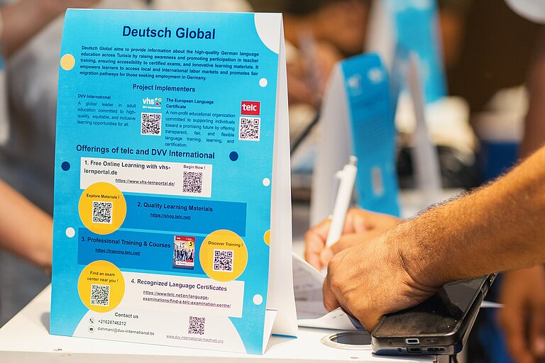 Est un projet issu de la collaboration entre DVV International et telc gGmbH visant à promouvoir l'enseignement et l'apprentissage de la langue allemande dans divers pays, y compris la Tunisie. Le bureau de "Deutsch Global" à Tunis collabore avec des organisations éducatives locales et internationales actives dans le domaine de l'éducation, particulièrement dans l'enseignement et l'apprentissage de la langue allemande.