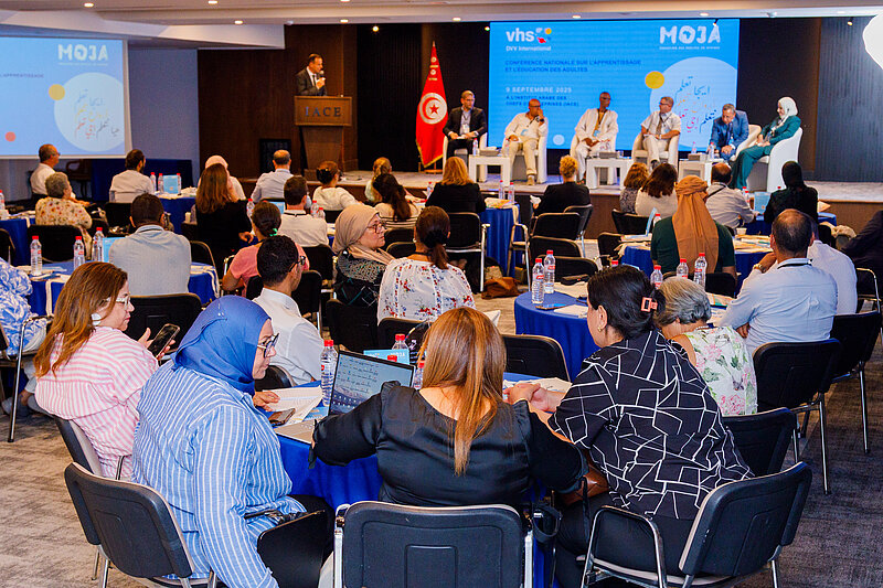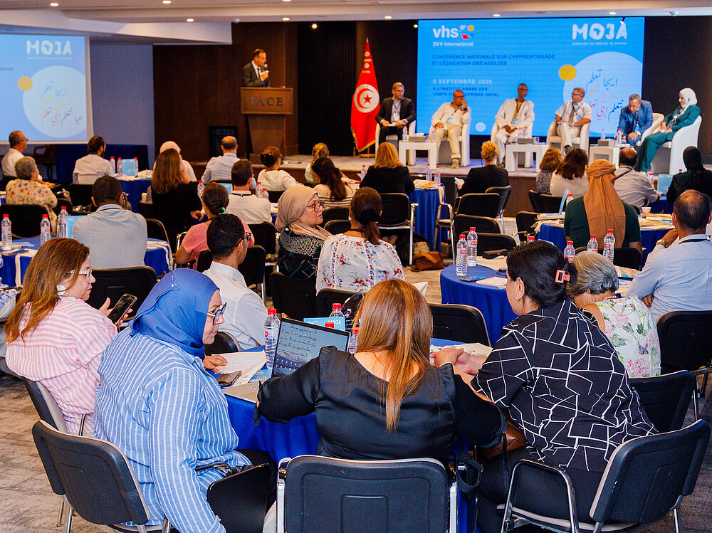 La Conférence nationale sur l’Apprentissage et l’Éducation des Adultes (AEA) s’est tenue le 9 septembre 2025 à l’Institut Arabe des Chefs d’Entreprises (IACE) à Tunis. Organisé par DVV International et MOJA, l’événement a rassemblé des praticiens de l’éducation des adultes, des chercheurs, des représentant·e·s gouvernementaux, ainsi que des acteurs de la société civile et du monde académique.