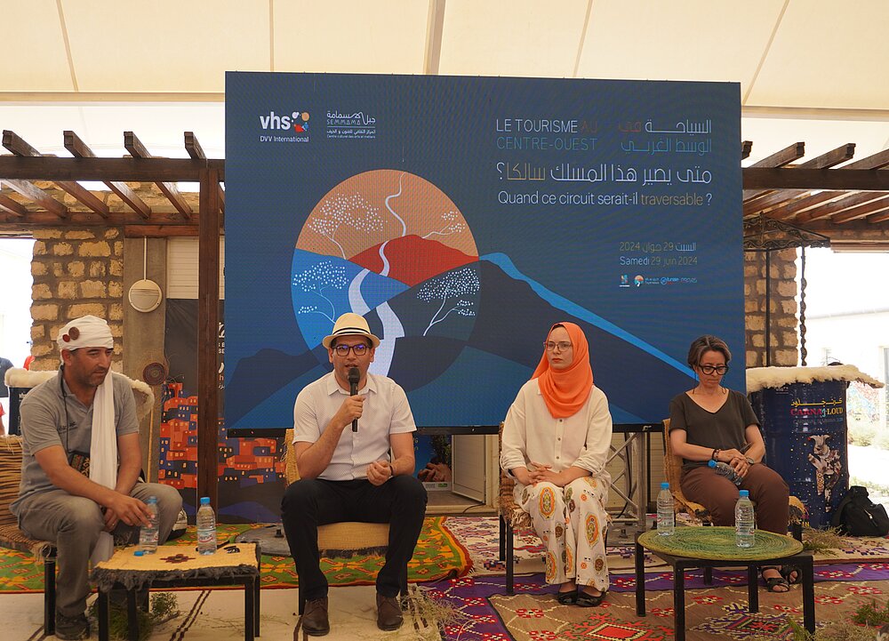 Le samedi 29 juin 2024, le Centre Culturel des Arts et Métiers de Djebel Sammama, en partenariat avec DVV International, a organisé une table ronde sur le thème "Tourisme au Centre-Ouest : Quand ce circuit serait-il traversable ?". Cet événement a rassemblé des acteurs clés, dont des membres de la commission du tourisme et de la culture de l'Assemblée des Représentants du Peuple, le gouverneur et le premier délégué de Kasserine, le directeur régional de l'Office National de l'Artisanat de Kasserine, ainsi que des professeurs universitaires en arts plastiques. Ensemble, ils ont exploré les défis et les opportunités liés au développement touristique dans la région.